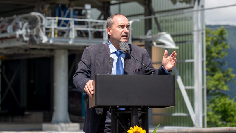 - Am Donnerstag (16. September) wird mit der offiziellen Einweihung der neuen Nebelhornbahn ein vergleichbar wichtiges Vorhaben gefeiert. Das Bayerische Wirtschaftsministerium förderte mit 11 Mio. Euro (bei einer Investitionssumme von knapp 50 Mio. Euro) die Investitionen der Nebelhornbahn AG in die Modernisierung der 90 Jahre alten Kabinenbahn. Die Nebelhornbahn gilt noch heute als eine der längsten Personenschwebebahnen der Welt.Wirtschaftsminister Aiwanger: “Mit der neuen Nebelhornbahn steigern wir die touristische Attraktivität Oberstdorfs deutlich. Die Modernisierung macht einen barrierefreien Einstioeg möglich. Die 10er Kabinen bieten jedem Fahrgast jetzt einen Sitzplatz für eine aussichtsreiche Fahrt.”