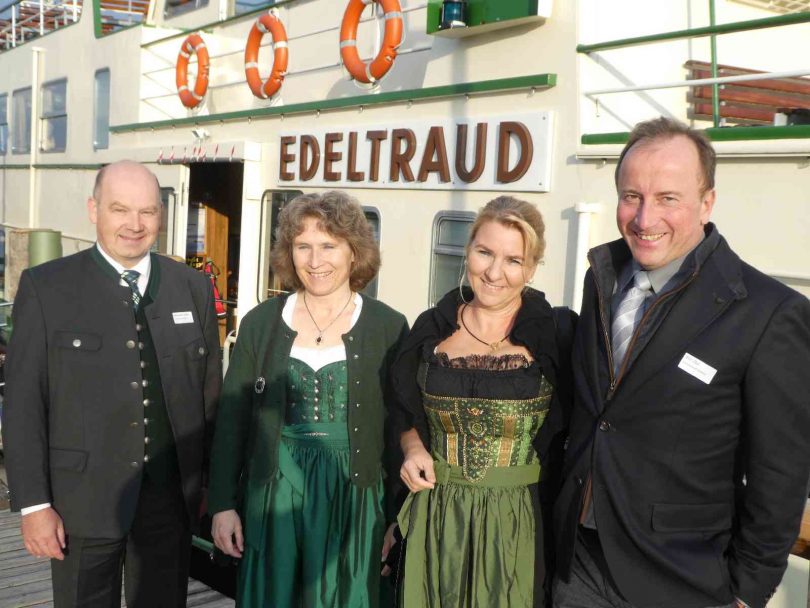 Einmal im Jahr laden gemeinsam die Chiemsee-Schifffahrt von Prien und die Kampenwandbahn von Aschau i. Chiemgau Touristikerinnen und Touristiker aus den Landkreises Rosenheim und Traunstein zu einem gemeinsamen Informationsabend ein. Heuer traf sich die große Touristikerfamilie auf dem Motorschiff Edeltraud der Familie Feßler. Mit aktuellen Informationen, mit einem vom Cafe Luitpold zubereiteten Büffet und mit einer schönen Sommerabendstimmung wurden die Gäste, die ihrerseits die Urlauber und Vermieter beraten, für ihr Kommen belohnt.