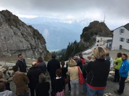 Rund 60 Touristiker zwischen Ammersee und Reichenhall kamen gestern am Wendelstein zusammen, um sich über Angebot und Neuheiten am Berg zu informieren. Im Fokus standen heute vor allen die erweiterte Bergterrasse am Wendelstein und das neue Spielgelände mit der „Trojanischen Gams“.