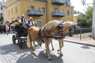 Mit dabei waren auch sechs Festkutschen mit Erdings Landrat Martin Bayerstorfer, Bürgermeister der Stadt Dorfen Heinz Grundner und ihrem bildhübschen Volksfestmadl, Therresa Herzog, der 1. Landesschützenmeister Christian Kühn, Bezirksschützenmeister Alfred Reiner, der Ehrenbezirksschützenmeisters Josef Niedermeier zusammen mit dem Bezirksschützenamt aus Oberbayern, sowie Ehrengauschützenmeister Georg Schatz. Auch Gauschützenabordnungen aus Erding, Mühldorf, Wasserburg-Haag, Rosenheim und von Dorfen jeweils mit ihren Gaukönige waren ebenfalls mit von der Partie, wie die beiden Trachtenvereine Almrausch Wasentegernbach und die Stoarösler Dorfen. Aus dem Holzland und aus der Vilsgemeinde Taufkirchen wirkten folgende Schützenvereine mit: Holzlandböllergruppe, Vilstaler Kienraching, Edelweiß Niederstraubing, Eichenlaub Wambach, Waldperle Inning am Holz, Hubertus Hofkirchen, Stephanstaler Kögning, Feuerschützen Hohenpolding, Schützengesellschaft Moosen, Altschützen Taufkirchen und die Tannengrünschützen Geislbach. Mit dabei waren die Stadtkapelle Dorfen, Blaskapelle St.Wolfgang, Blaskapelle Buchbach, Trachtenkapelle Wasentegernbach, Musikkapelle Sankt Wolfgang  und die Blaskapelle aus Schwindegg. Der Dorfener Festzumzug war am Sonntagnachmittag somit der größte Trachten- und Schützenaufmarsch im gesamten Erdinger Land.