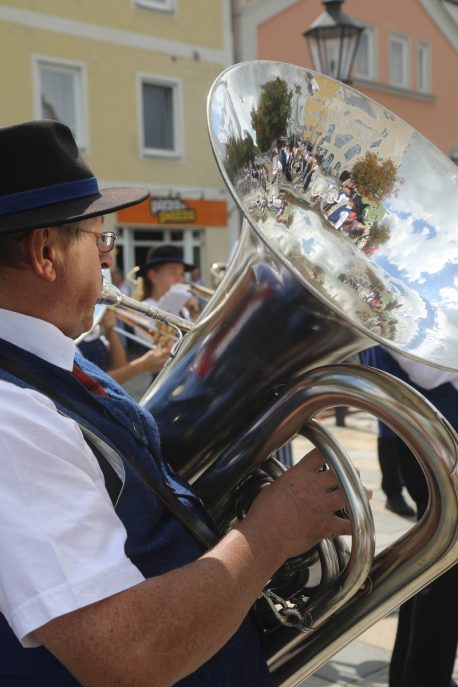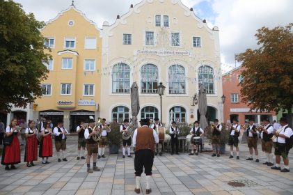 Beim vorausgegangenen Standkonzert am unteren Markt wirkte neben der Stadtkapelle Dorfen, Musikkapelle Sankt Wolfgang erstmals auch der Isentaler-Schalmeien-Express Dorfen mit, nachdem die Böllerschützengruppen aud dem Holzland und Hofgiebing am Ruprechtsberg das Großereignis lautstark eröffneten. Bürgermeister Heinz Grundner dankte allen Zugteilnehmern für ihren großem Beitrag als Zeichen der Gemeinschaft, Brauchtum und Tradition geleistet haben. Landrat Martin Bayerstorfer war total begeistert. Alles, was Rang und Namen hat, war in der Isenstadt Dorfen vertreten. Der Landesschützenmeister Christian Kühn brachte es auf dem Punkt: “Die Schützen halten Tradition und Brauchtum hoch und daneben wird auch der Sport und das gesellige gepflegt”. Der Gauschützenmeisterin Gertraud Stadler mit ihrer gesamten Gauvorstandschaft Dorfen wurde ebenfalls gedankt. Sie haben eine vorbildliche Arbeit geleistet und für einen reibungslosen Ablaufes des Schützen- und Trachtenfestzuges gesorgt.