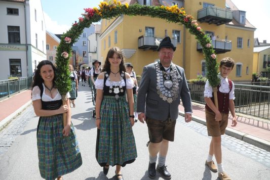 Zum Ausklang des diesjährigen 144. Dorfener Volksfestes fand nach zweijähriger Zwangspause bei idealem Bilderbuchsommerwetter am Sonntagnachmittag, 21. August  der große Trachten- und Schützenumzug des Schützengaues Dorfen statt. Hierzu wirkten heuer über 1300 Teilnehmer, darunter rund 150 Kinder aus über 26 Vereinen in ihrer schmucken Vereinstracht mit, angeführt von ihren jeweiligen Schützenkönigen, durch die herausgeputzte Isenstadt Dorfen.