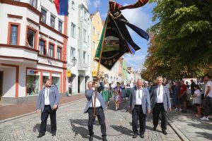 Der Niederstraubinger Fähnrich von den Edelweißschützen beim Fahnenschwingen