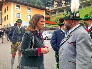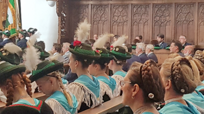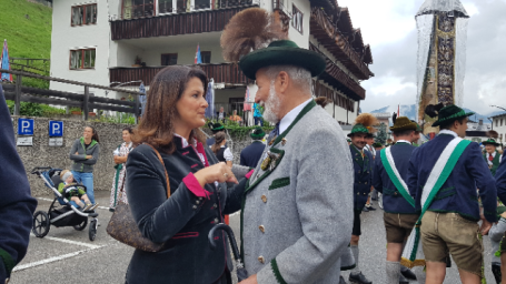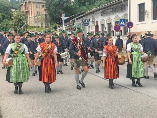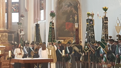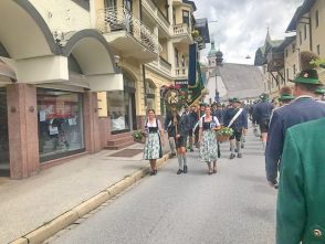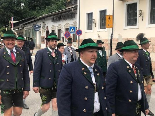 Da hat es der Wettergott gut gemeint mit den Vereinigten Weihnachtsschützen und den Trachtenvereinen des Berchtesgadener Landes gemeint. Kein Regen und angenehme Marschtemperaturen herrschten schon beim Einzug in die Stiftskirche als der kirchliche Teil des traditionellen Trachten- und Schützenjahrtags gefeiert wurde. Dekan Dr. Thomas Frauenlob zog in seinen Worten den Lebensvergleich zum Samariter. “Handle genau so”, so sein Aufruf im voll besetzten Gotteshaus in Berchtesgaden. Abschließend segnete er die reichlich geschmückten Fahnen und die Vereinsmitglieder. Zu den Ehrengästen gehörten unter anderem Bayerns Landwirtschaftsministerin Michaela Kaniber und Michael Hauser, Gauvorstand vom Gauverband I, dem die Vereinigten Weihnachtsschützen und Trachtenvereine des Berchtesgadener Landes angehören.