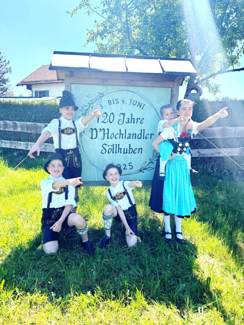 Bericht: Susi Stocker – Foto: Maria Hirthe – Die Söllhubener Trachtenkinder zeigen, wo das Festzelt steht.