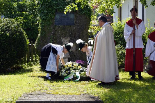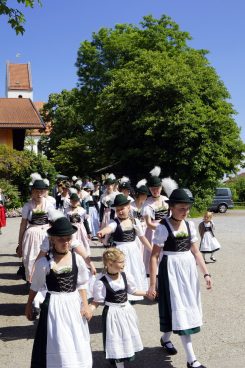 Zum Gedenken an die verstorbenen Mitglieder der Vereine wurde von zwei aktiven Dirndln am Kriegerdenkmal ein Kranz niedergelegt. Anschließend spielte die Samerberger Musik den Zug zum Gasthof Maurer, wo bei strahlendem Sonnenschein das Beisammensein im Biergarten gleich noch mehr schmeckte.