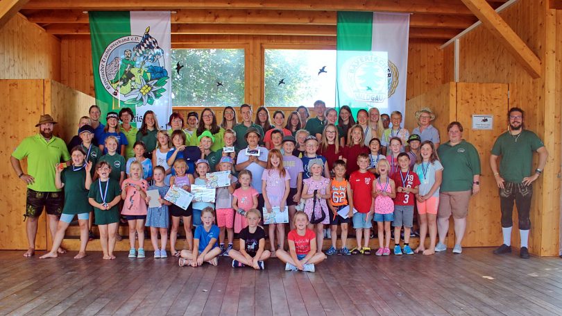 Auf dem weitläufigen Areal des Kurparks waren verschiedene Spielstationen aufgebaut, wo Geschicklichkeit, Schnelligkeit und vor allem Teamfähigkeit gezeigt werden mussten. Insgesamt hieß es für neun Teams aus jeweils sechs Personen 12 Stationen zu meistern. Die Teams wurden durch Ziehen von Süßigkeiten zusammengelost, so dass Klein und Groß aus verschiedenen Vereinen in einer Gruppe waren. Ihr Wissen stellten die Kinder beim Mundartquiz und der Brauchtumsralley unter Beweis. Schwierig erwies sich die Aufgabe, die bayerischen Feiertage nach Ablauf im Jahr zu ordnen. Weiter gab es Eierlauf, Sackhüpfen und Wasserschöpfen. Am Basteltisch wurde mit Kartoffeldruck ein Rucksack gestaltet. Natürlich durfte auch eine Siegerehrung mit Überreichung der Gold-, Silber-, und Bronzemedaillen für die besten Teams nicht fehlen. Jeder Verein erhielt zudem eine Urkunde, eine Großpackung Gummibären für die nächste Gruppenstunde und jedes Kind durfte sich noch ein Geschenk aussuchen.