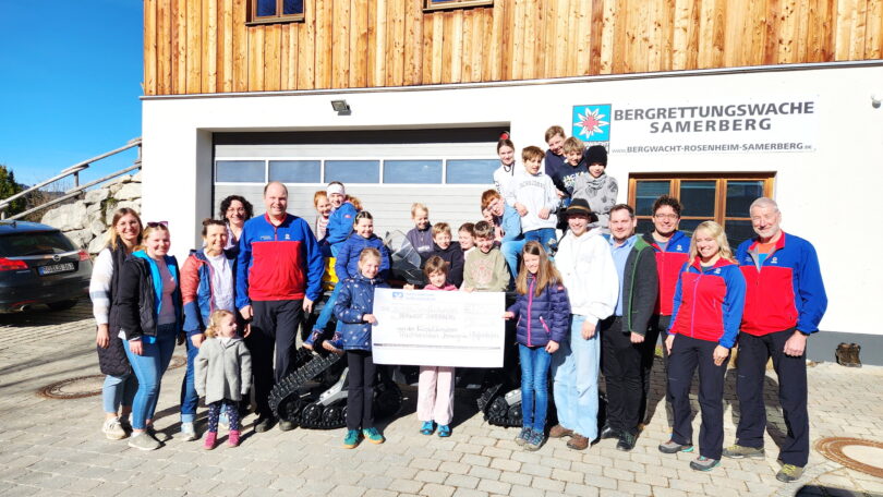 Eine besondere Spende überreichten die Trachtenkinder des G.T.E.V. Immergrün Pfaffenhofen an die Bergwacht Rosenheim-Samerberg: Den Erlös ihrer Klöpfelkinderaktion in Höhe von 2.500 Euro.