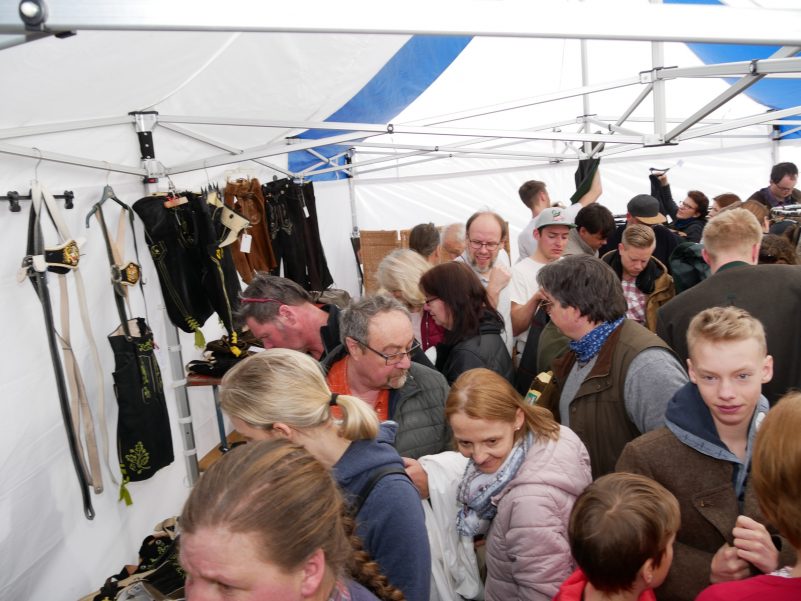 Regen Andrang und Zuspruch hatte der Auer Trachtenmarkt, den der GTEV „Immergrün”  Au  im Sportheim des ASV Au  veranstaltete. Der Besucherstrom war zeitweise so hoch, dass es in den Räumlichkeiten kein Weiterkommen mehr gab.  Zum Verkauf kamen gebrauchte und gut erhaltene Trachtenkleidung für Groß und Klein, Trachtenschuhe/Haferlschuhe, Hüte und vieles mehr. Hatte der eine oder andere Besucher kein Glück bei der Suche, hatte er die Möglichkeit sich bei einem der Anbieter im  Aussenzelt w.z.B. Schuh Auer von Törwang/Samerberg das Passende erwerben. Stärken konnten sich die zahlreichen Besucher bei selbstgebackenen Kuchen und Kaffee.
