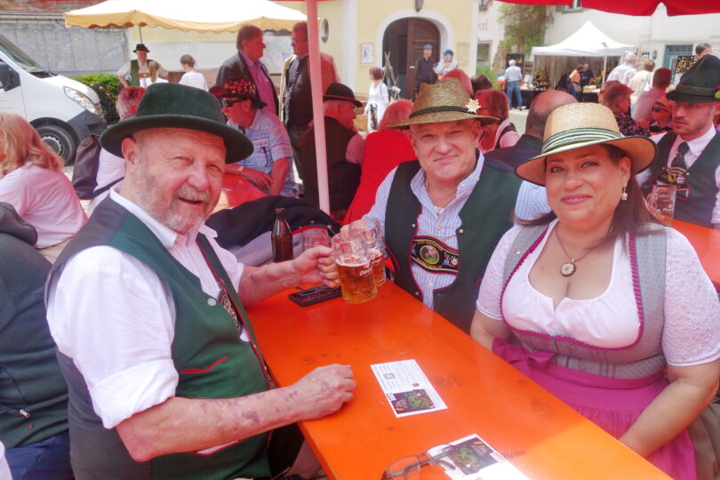 Zu einem freudigen Wiedersehen kam es beim Neubeurer Trachtenmarkt: Familie Marijo, John und Sabine Weinzierl traf auf das Ehepaar Annelies und Walter Weinzierl aus Kolbermoor. Die beiden Familien kennen sich schon seit einigen Jahren, als die Vorständin der “Hudsontaler” aus Washingtonville im Staate New York auf der alten Wiesn in München ihre Namensvettern aufsuchte.