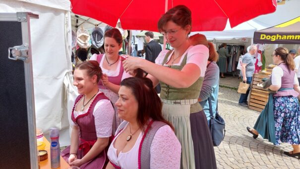 In Neubeuern nutzten die Frauen die Gelegenheit, sich ihre Haare flechten und aufstecken zu lassen, während John und Walter sich ein Bier gönnten.