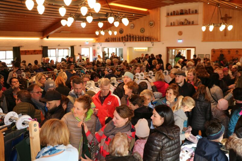 Zwei Dutzend Frauen aus Frasdorf und Umgebung organisieren jedes Jahr einen Tauschmarkt für gebrauchte Trachtenkleidung. Seit den Anfängen im Frasdorfer Pfarrsaal vor knapp 20 Jahren sind schon viele Jahre ins Land gegangen und heute reicht die große Lamstoahalle gerade noch aus, um das fast unüberschaubare Angebot an guter gebrauchter Trachtenbekleidung präsentieren zu können. Die Festsaison steht schon vor der Tür, in Aschau feiern die „Griabinga“ Hohenaschau das Gaufest des Chiemgau-Alpenverbands verbunden mit dem 140-jährigen Gründungsfest vom 25. Juli bis zum 5. August im Festzelt und auch die Trachtler, Schützen, Feuerwehrleute und Veteranen der Umgebung feiern wieder große Zeltfeste. Alles was Trachtler und Schützen für die kommende Saison an Joppen, Jankern, Westen, Hosen und Hüten, an Gewand, Schürzen und Miedern brauchen – nach dem Verkaufsmotto „Gebrauchtes rund um die Tracht“ – gab es auf dem Frasdorfer Gwandmarkt in der Lamstoahalle zu kaufen.