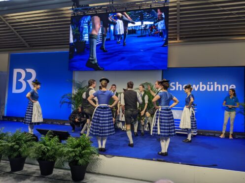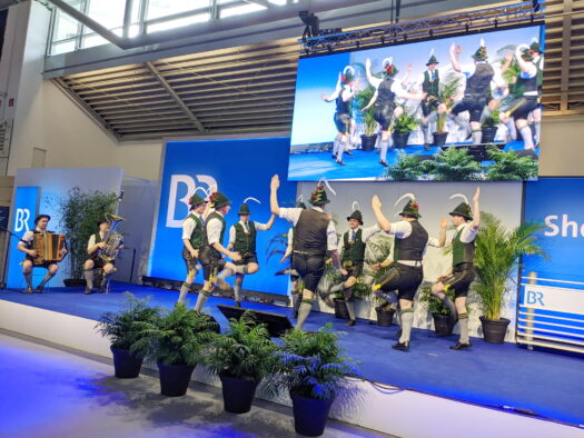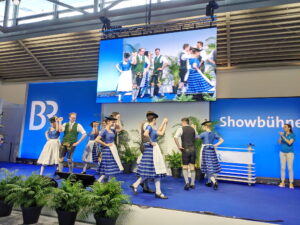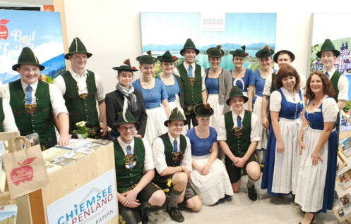 Den Abschluss einer guten und fünftägigen Messepräsenz auf der Münchener Reisemesse f.re.e bildete für den Tourismusverband Chiemsee-Alpenland (CAT) eine vielbeachtete Vorstellung des heurigen „Trachtensommers“. Bei den Präsentationen zusammen mit den Musikanten und Aktiven des Festsommer-Vereins Westerham auf der BR-Bühne und am Gemeinschaftsstand des Tourismusverbandes Oberbayern-München (TOM) erläuterte die CAT-Mitarbeiterin Astrid von Rauhecker die Bedeutung der Brauchtumspflege für den Tourismus.