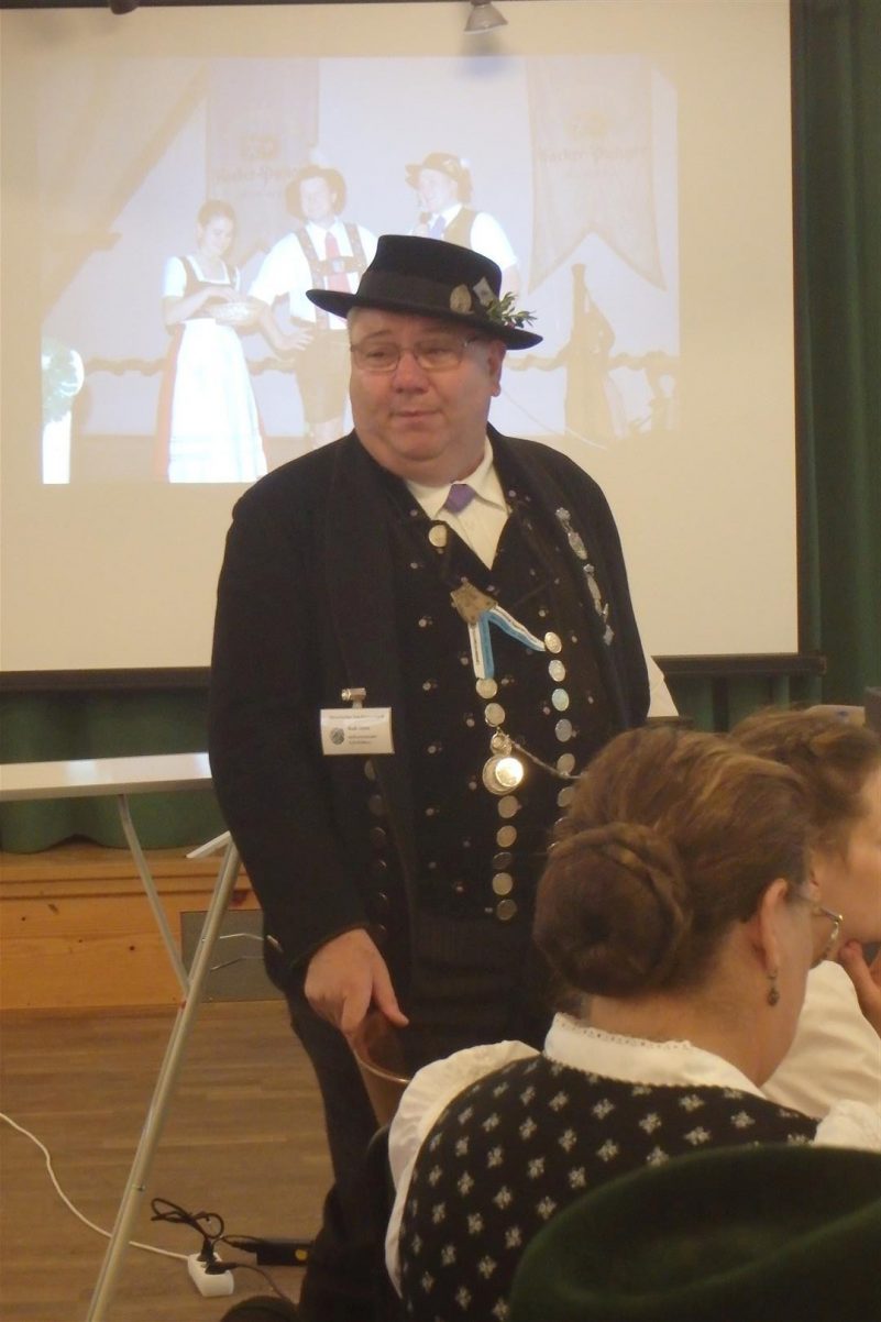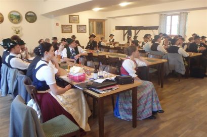 Ihren Schriftführerbericht verband Hildegard Kallmaier anschließend mit einem Rückblick auf das vierte Gesamtbairische Tanzfest, das am 04. Mai 2019 unter der Schirmherrschaft des Landrates im Landkreis Landshut, Peter Dreier, in der Rampl-Festhalle in Hinterskirchen mit drei Tanzlmusiken und Darbietungen von 18 Gaugruppen, der Mittenwalder Plattlergruppe von der Oberländer Trachtenvereinigung, der Jugendtanzgruppe der Siebenbürger Sachsen Traunreut und dem Trachtenverein Hinterskirchen stattgefunden hatte. Aus dem Erlös dieser großen Brauchtumsveranstaltung konnte erneut ein stattlicher Betrag für das Trachtenkulturzentrum Holzhausen gespendet werden. Die Sachausschuss-Vorsitzenden Matthias Wiesheu und Florian Kress berichteten über die Teilnahme als Referenten an diversen Tanz- und Plattlerschulungen und dankten allen Trachtlern, die bei der ‘Grünen Woche’ in Berlin, beim Gäubodenfest in Straubing, beim Trachtenmarkt in Greding und bei der ‚Oidn Wiesn‘ im Rahmen des Münchner Oktoberfestes mit Plattlern und Tänzen mitgewirkt hatten. Außerdem gaben sie bekannt, dass auch beim nächsten ‚Oide Wiesn Bürgerball‘ am 24. Januar 2020 im Deutschen Theater in München u. a. wieder 22 Repräsentantenpaare des Bayerischen Trachtenverbandes auftreten werden und baten um Belegexemplare von Plattler- und Tanz-DVDs der angeschlossenen Gauverbände für die Einrichtung einer künftigen Bibliothek zu den verschiedenen Sachgebieten im Trachtenkulturzentrum Holzhausen. Am 16. Mai 2020 findet im Trachtenkulturzentrum Holzhausen zudem ein großes Forum für Jugendarbeit und Jugend mit Mitwirkung der Sachausschuss-Vorsitzenden statt und hinsichtlich der Fußball-Vorrundenspiele und Viertel-Finalspiele im Rahmen der Fußball EM 2020 wird voraussichtlich in München ein Straßenmusizieren mit Plattler- und Tanzauftritten organisiert. In einem kurzen Grußwort zeigte sich abschließend der stellvertretende Landesschriftführer Rudi Dietz beeindruckt von der Aufgabenvielfalt im Sachgebiet ‚Schuhplattler und Volkstanz‘ und dankte den Gauvorplattlern und GauvortänzerInnen für ihren besonderen Einsatz um Brauchtum und Kultur.