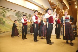 Mit der schwaren Tracht wurde der Sensen- und Erntetanz aufgeführt