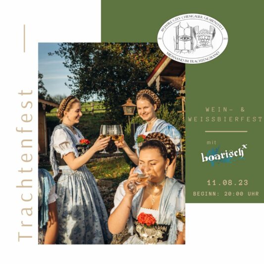 Tagsdarauf am Freitag, 11. August, um 20 Uhr veranstalten die Aktiven des Vereins ein Wein- und Weißbierfest mit der Chiemgauer Partyband “Boarisch X”.