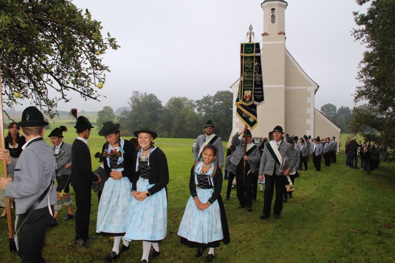 Heuer konnte die langjährige Tradition wieder fortgesetzt werden und trotz starkem Nebel machten sich am Sonntagvormittag viele Vereinsangehörige, sowie einige Pfarreiangehörigen, zu Fuß den Rosenkranz betend auf den Weg zur Filialkirche. Zum Gottesdienst wurden sie von Pfarrer Herbert Weingärtner im mit Blumen geschmückten Gotteshaus begrüßt. In seiner Predigt ging der Geistliche auf das Tagesevangelium ein und bat die Mitfeiernden, sich für die Schwächeren einzusetzen und als Christen verantwortungsvoll zu leben. Zur feierlichen Gestaltung trugen die „Dreierlei Musi“ mit Musikstückl und die Griesstätter Sängerinnen mit passenden Liedern bei. Betend zogen die Trachtlerinnen und Trachtler anschließend wieder nach Griesstätt zurück, wo der Bittgang mit einer kurzen Andacht, gestaltet von Pfarrer Weingärtner, am Feldkreuz in der Innstraße abgeschlossen wurde.