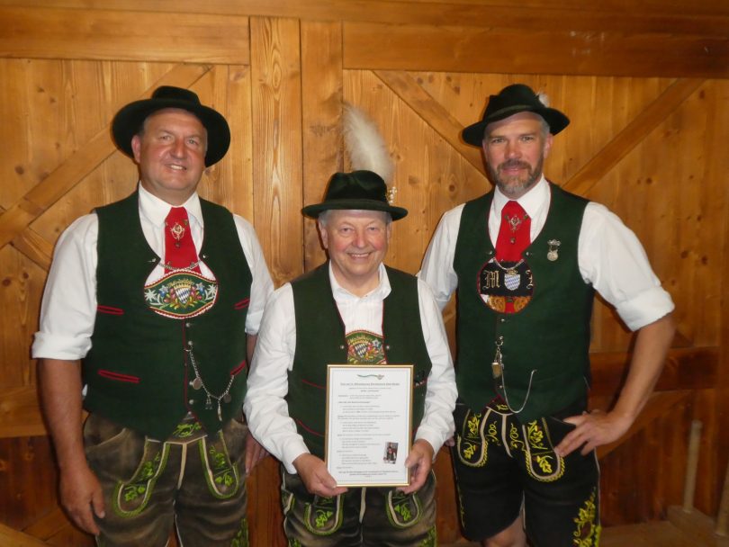 Pandemiebedingt konnte der Trachtenverein Hoffstetten ihren Ehrenvorstand Josef Probst Ende Dezember nur im ganz kleinen Rahmen zu seinem 70. Geburtstag gratulieren. Umso mehr freute sich der Verein jetzt, ihn in größerer Runde hochleben zu lassen. Der Jubilar freute sich sichtlich über die nachträglichen Glückwünsche, die 1. Vorstand Christian Blank und 1. Vorplattler Severin Pfetterle im Namen der Vorstandschaft und der Aktiven Plattelgruppe aussprachen. Sie dankten Sepp für sein 45-jähriges Wirken in verschiedenen Ämtern der Vorstandschaft, u.a. war er stolze 29 Jahre 1. Vorstand. In geselliger Runde wurde dem Jubilar zu Ehren ein Lied angestimmt, das extra für ihn gedichtet worden war. Darin hieß es: „Wir gratuliern dir alle heut, und feiern gern mit dir, weils uns so gfreit!“ Den Liedtext erhielt er anschließend noch eingerahmt als Geschenk.