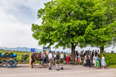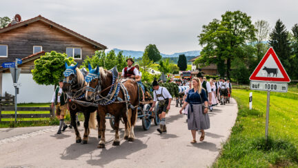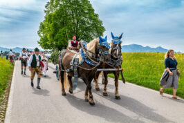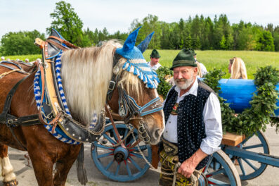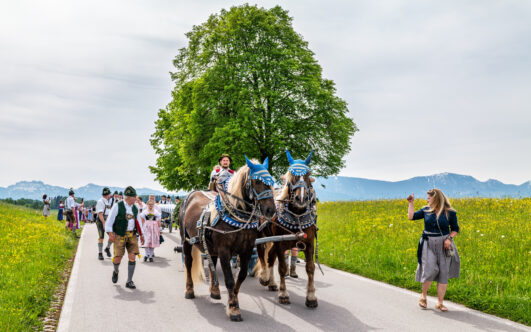 Heute am 1. Mai bringt der Trachtenverein Roßholzen den Maibaum nach Neukirchen am Simssee, gezogen von zwei Pferden, begleitet von in Tracht gekleideten Dirndl und Buben. In den frühen Morgenstunden des 1. Mai, als die ersten zarten Sonnenstrahlen über die idyllischen Hügel des Samerbergs krochen, begann eine jahrhundertealte Tradition zum Leben zu erwachen als sich die Mitglieder des Trachtenvereins Roßholzen versammelten, um den Maibaum nach Neukirchen am Simssee zu bringen.
