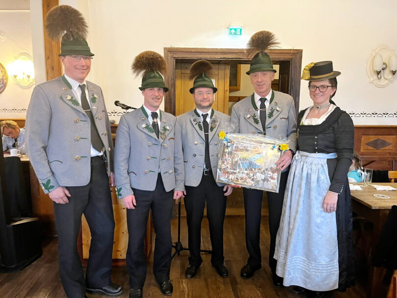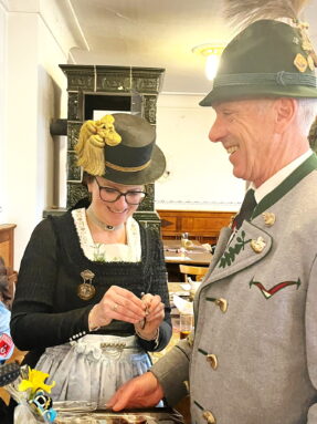 In sehr schöner Versform bedankte er sich bei ihm für seinen Vereinseinsatz. Der Sepp war schon immer ein guter Plattler und ist auch heute noch mit bei den Plattlerproben behilfich, um die Kinder auf das Preisplatteln vorzubereiten. Über viele Jahre hinweg hat er dem Verein stets zur Seite gestanden. Sepp war in verschiedenen Funktionen im Verein aktiv, darunter als Vorplattler in jungen Jahren, Schriftführer, Jugendleiter, Theaterspieler, Christbaumversteigerer und Preisrichter.
