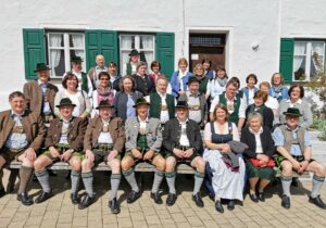 Gruppenbild vom Ausflug des GTEV D’Wendlstoana Thanning vor dem künftigen Museum des Bayerischen Trachtenverbandes im niederbayerischen Holzhausen nahe Landshut. Foto: GTEV D’Wendstoana Thanning e.V.