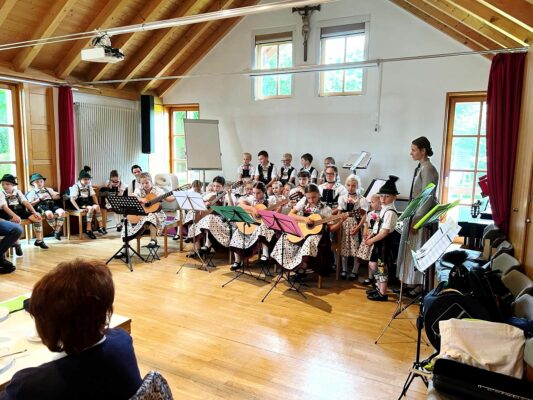 Für Franz Praßberger, 3. Bürgermeister, Vorstand des Trachtenvereins und Seniorenbeauftragter der Gemeinde war dieses Treffen der älteren Mitbürger ein besonderes Erlebnis. „Rund 30 Kinder und Jugendliche haben mit Freude und Stolz gezeigt, was sie in den Proben erlernt haben, hierzu gilt mein besonderer Dank den Jugendleiterinnen Sandra Paul und Barbara Bauer“. Die Ansage an diesem Nachmittag mit Erklärungen zu den Bernauer Trachten übernahm aus den Reihen der Jugend Johannes Deingruber, für die musikalische Begleitung beim Auftanz sorgte Laurent Bauer mit seiner Ziach. Zum gemeinsamen Singen begleiteten sich die Kinder und Jugendlichen selbst mit gekonnter Gitarrenmusik. Abgerundet wurde der Seniorennachmittag noch mit Kaffee und Kuchen, gespendet von den Frauen des Bernauer Trachtenvereins.