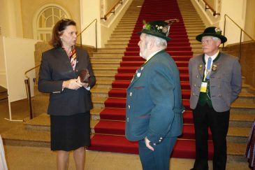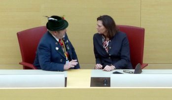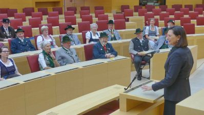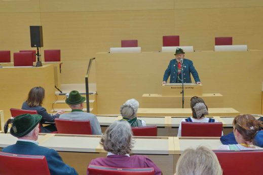 Ilse Aigner, seit 25 Jahren Mitglied im Bayerischen Landtag würdigte in ihrer Begrüßung das Wirken der Trachtlerinnen und Trachtler für das Land Bayern und sie sagte dabei: „Eure Traditionen sind nicht aufgesetzt, Ihr prägt das Bild von Bayern und Deutschland weltweit und das ist gut so“. Mit einem Seitenblick auf die jüngst erfolgte Kritik an ihrem Tragen eines Fuchspelzes sagte sie: „Fuchsstola, Hirschlederne oder Gamsbart – das sind Bestandteile der Tracht und der Traditionen, das muss man verstehen“. Wie die Landtagspräsidentin weiter ausführte, haben im Plenarsaal seit der letzten Wahl 205 Abgeordnete Platz, das sind 25 mehr als in der vorhergehenden Legislaturperiode. Sechs Jahre werden die inzwischen begonnenen Um- und Ausbauarbeiten im großen Landtags-Komplex in Anspruch nehmen. Landesvorsitzender Max Bertl dankte in seiner Ansprache dem Bayerischen Landtag und der Bayerischen Staatsregierung für das wohlwollende und stets gute Miteinander. Zum Dank für die Einladung hatte er ein besonderes Geschenk. „Wir wissen“ – so Max Bertl zu Ilse Aigner – „dass Du Dich als Vorsitzende vom Förderverein für das Caritas-Kinderdorf Irschenberg für Menschen, die nicht auf der Sonnenseite leben, einsetzt, deswegen haben wir für diese Einrichtung eine Spende überwiesen“. In der offenen Aussprache regte Geschäftsführer Andreas Oberprieler vom Trachtenkulturzentrum Holzhausen namens des bayerischen Bildungs-Bündnisses an, dass auch in Bayern wie schon in den meisten anderen Bundesländern ehrenamtliche Tätigkeiten bei der Weiterbildung Anerkennung seitens der Arbeitgeber finden mögen. Christian Kammerbauer, stellvertretender Landesjugendleiter gab bekannt, dass am 16. Mai ein großes Forum für rund 1.000 Jugend-Verantwortliche unter dem Motto „Heimat, Tradition und Brauchtum heute – warum braucht die Gesellschaft Jugendleiter-Tätigkeiten?“ im Trachtenkulturzentrum Holzhausen stattfinden wird. Zu dieser Groß-Veranstaltung lud er die Landtagspräsidentin ein, diese sagte eine Prüfung des Termins zu und sagte weiter: „Jugendleiter-Tätigkeiten kann man nur unterstützen, denn es ist eine Freude zu wissen, dass bei den Jugendleitern die Kinder gut aufgehoben sind und dass sie dabei eine wichtige Grundlage für ihr weiteres Leben erhalten“. In weiteren Beiträgen wurden Beispiele übertriebener Bürokratie und zeitraubender Auflagen vorgebracht, oft ersticken –so die Trachtler- die Ehrenamtlichen in den Zusatz-Aufgaben und kommen somit nicht mehr zu den eigentlichen Maßnahmen, was vielfach zu Verdruss und Verlust der Ehrenamts-Bereitschaft führt. Ein Beispiel war das neu geforderte Statiker-Prüfzeugnis für Bühnen bei Fest-Veranstaltungen, hierzu sagte der stellvertretende Landesvorsitzende Peter Eicher: „Seit Anfang der 60er Jahre bin ich trachtlerisch bei vielen Veranstaltungen unterwegs, eine Bühne ist bisher noch nie eingekracht“. Die ebenfalls angesprochene und aktuell von der Politik angestoßene Gemeinnützigkeits-Diskussion bezeichnete Ilse Aigner als „Blödsinn“, das Ende der Diskussion ist nach ihrer Einschätzung im Bundesrat zu erwarten. Mit Blick auf die vielfach wahrnehmbare Verrohung der Gesellschaft, unter anderem im Ton bei den sozialen Medien antwortete Ilse Aigner mit den Worten: „Gesetzliche Maßnahmen sind das Eine, aber Jeder von uns ist gefordert, wenn es um den Anstand im Umgang mit- und untereinander geht“. Dem Meinungsaustausch im Plenarsaal folgten noch eine Filmvorführung, ein informativer Gang durch den Landtag und ein gemeinsames Mittagessen.