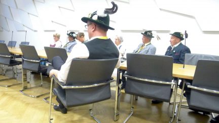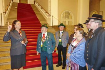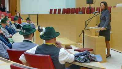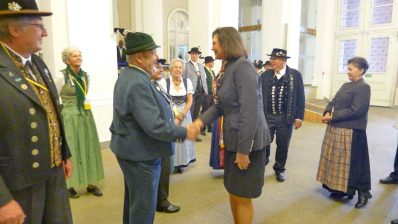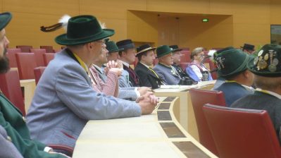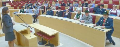 Hoher Trachtler-Besuch im Bayerischen Landtag: Landesvorsitzender Max Bertl vom Bayerischen Trachtenverband mit Mitgliedern des Landesausschusses und der Gauverbände nahmen eine Einladung von Landtagspräsidentin Ilse Aigner an, informierten sich über das politische und bauliche Geschehen im Landtag und nahmen für eine Diskussionsstunde im Plenarsaal Platz.
