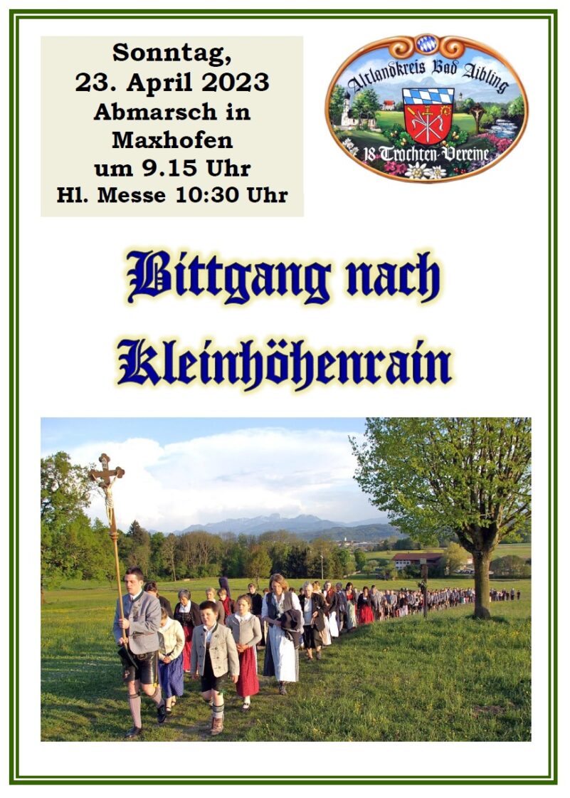Einen Bittgang nach Kleinhöhenrain unternehmen die 18 Trachtenvereine des Altlandkreises Bad Aibling am Sonntag, 23. April.
