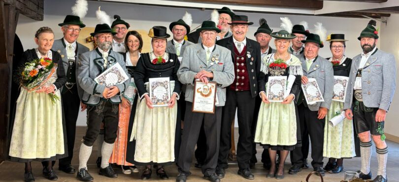 Weiter blicken auf ein halbes Jahrhundert aktive Mitgliedschaft zurück Agathe Haller, Georg Hingerl, Peter Huber, Rupert Lohmayer und Hannelore Stadlmair. Die seit sechzig und fünfzig Jahren aktiven Mitglieder wurden mit Anstecknadel und Urkunde und einer Gauchronik oder einem großen Vereinsfoto ausgezeichnet. Für 40jährige aktive Mitgliedschaft wurde Andreas Maier (Mitglied der Schnalzergruppe) und für 30jährige aktive Mitgliedschaft Marcella Holzgassner ebenfalls mit Anstecknadel und Urkunde belobigt. An der Spitze der Ehrung der passiven Mitglieder stehen Elisabeth Sperr und Gerhard Landenhammer mit jeweils 60 Jahren Mitgliedschaft. Die Urkunde für 50jährige Mitgliedschaft erhielten Irmengard Glas, Anni Höpfinger, Bernhard Höpfinger, Siegfried Höpfinger, Therese Kinzner (Grund), Hermine Obermeier, Elisabeth Hanslmeier, Stefan Hanslmeier, Gertrud Hanslmeier-Prockl, Regina Hornberger, Josefine Vaas und Therese Vaas. Die Ehrung für 40jährige Mitgliedschaft bekam Rosmarie Brandmeier. Ebenfalls eine Urkunde erhielten für 30jährige Mitgliedschaft Hans Biermeier, Christian Holzner, Walter Semerad und Josef Sedlmeier.