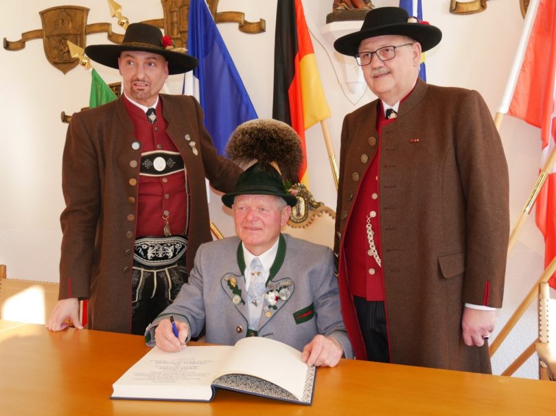 Bericht und Foto: Inge Erb – links: Robert Gerhart, Vorstand des Volkstrachtenvereins Altötting e. V., Peter Eicher bei seinem Eintrag und rechts: Herbert Hofauer, Bürgermeister der Stadt Altötting