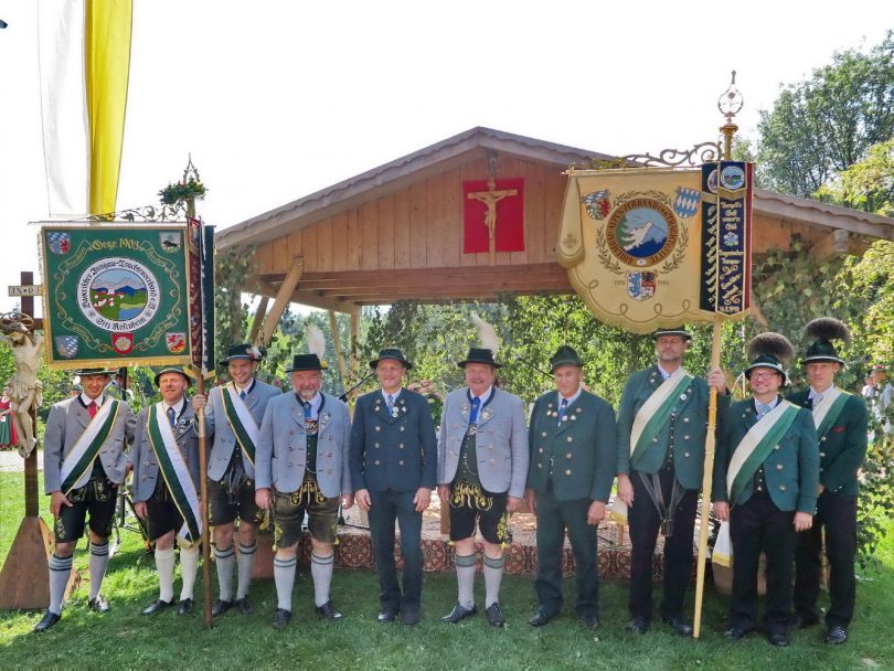 Seit 20 Jahren sind die Gauverbände Chiemgau-Alpenverband und Bayerischer Inngau-Trachtenverband besonders eng verbunden. Bei der seinerzeitigen Weihe der Standarte im Jahr 1998 stellte sich der Chiemgau dem Inngau als Pate zur Verfügung, was die bereits bestehenden freundschaftlichen Beziehungen noch stärker festigte. Um dieser Paten- und Freundschaft auch nach aussen Ausdruck zu verleihen, beteiligte sich heuer der Chiemgau-Alpenverband bei der Wallfahrt des Bayerischen Inngau-Trachtenverbandes von Brannenburg zur Wallfahrts-Kirche  Mariahilf und St. Johann Nepomuk auf der Schwarzlack mit seiner 1984 beim Gaufest in Bernau geweihten Standarte.