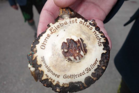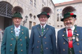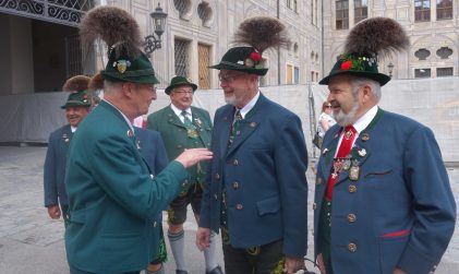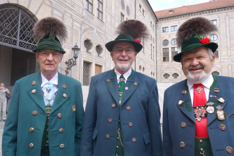 Dass Geistliche der Katholischen Kirche den Brauchtums-Veranwortlichen in Bayern nahe stehen ist etwas „Normales“. Etwas „Besonderes“ ist es, wenn ein Pfarrer sich in der Öffentlichkeit auch in voller Tracht zeigt. So ist es immer wieder, wenn Wallfahrtspfarrer und Monsignore Gottfried Fellner von der welt bekannten Wieskirche in der Gemeinde Steingaden im Pfaffenwinkel unterwegs ist. Jüngst machte sich Gottfried Fellner zu einer Feierstunde in der Münchner Residenz zusammen mit dem Gauvorsitzenden des “Oberen Lechgau-Trachtenverbandes”, Walter Sirch auf den Weg. Dabei traf er auch mit dem Landesvorsitzenden, Max Bertl und dem Ehrenmitglied Konrad Vogel vom Bayerischen Trachtenverband zusammen. „Das freut mich ganz besonders, ihn kennenzulernen, denn ich bin ein begeisterter Leser des Heimat- und Trachtenboten, durch diesen bin ich immer bestens informiert, was in ganz Bayern bei den Gauverbänden so los ist, der Heimat- und Trachtenbote ist ein ganz wichtiges Instrument für Trachtler und Trachten-Interessierte“, mit diesen Worten begrüßte Monsignore Fellner den seit über 50 Jahren verantwortlichen Herausgeber des Heimat- und Trachtenboten. „Wie kamen Sie zur Tracht?“ – diese Frage beantwortete der 73jährige, nicht im Ruhestand befindliche Geistliche mit folgenden Sätzen: „Meine Großmutter hatte immer ihre Rupertigauer Tracht mit dem sogenannten Priener Hut. Meine Vorfahren waren Bauersleute in Tengling am Waginger See, und mein Vater in Waging vermittelte mir schon viel Heimat- und Brauchtums-Liebe. Als ich 2012 als Seelsorger zur Wieskirche kam, wurde ich gleich kameradschaftlich vom Trachtenverein Oberlandler-Wies aufgenommen. Bei der von mir gewünschten Anschaffung der Tracht wurde ich sofort unterstützt, meinen Gamsbart erwarb ich von einem mir schon durch meine Vorfahren mütterlichseits bekannten Gamsbartbinder am Offensee iim Salzkammergut“. Vor der Zeit in der Wieskirche („Diese Stätte zum Dienst an Gott und an den Menschen hätte ich mir vorher nie träumen lassen“) war Gottfried Fellner 40 Jahre in Dillingen an der Donau als Religionslehrer am Gymnasium, als Stadtpfarrer und als Regional-Dekan tätig. Bischof Dr. Konrad Zolarsa von Augsburg war es dann, der die Berufung an die Wieskuratie aussprach. Erst vor wenigen Monaten durfte der Geistliche –natürlich in Tracht- beim Gaufest des Oberen Lechgauverbandes den Gottesdienst zelebrieren und in der Festkutsche mitfahren. „Das war einer von vielen trachtlerichen Höhepunkten in meinem Leben, ein Weiterer war, dass ich als leidenschaftlicher Schnupfer eine von Papst Franziskus persönlich gesegnete Schnupftabakdose erhielt mit ganz besonderen Widmungen auf der Dose“, so der Pfarrer von der Wieskirche.