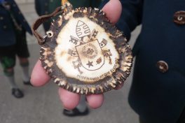 Foto/s: Hötzelsperger – 1. Von links in München bei der Residenz: Konrad Vogel, Herausgeber des Heimat- und Trachtenboten, Msgr. Gottfried Fellner und Landesvorsitzender Max Bertl. 2. Weitere Aufnahmen anl. des Zusammentreffens in München. 3. Die von Papst Franziskus gesegnete Schnupftabakdose.