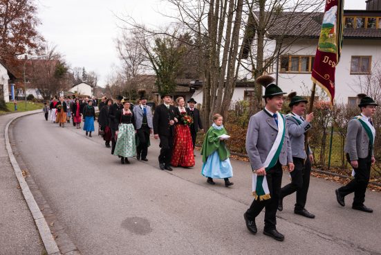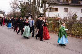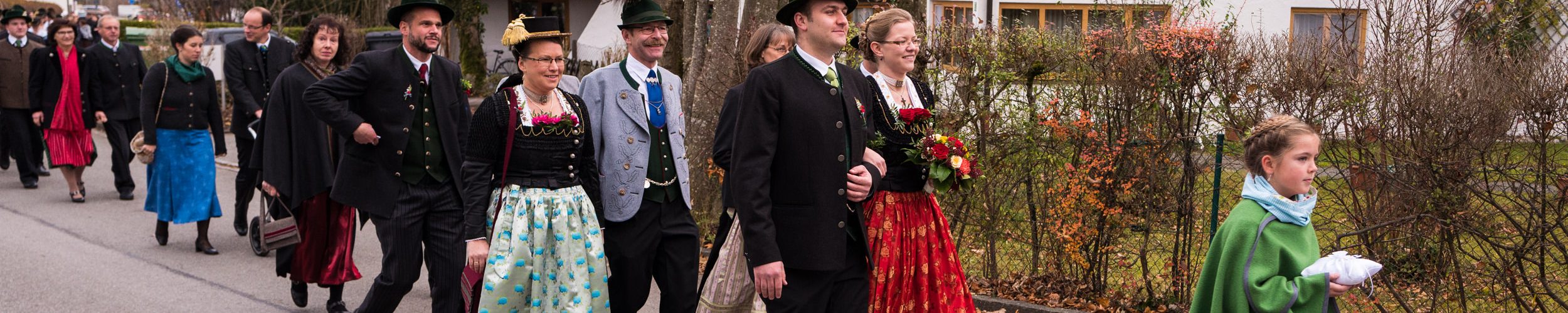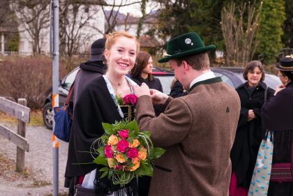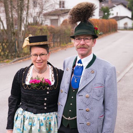 Eine schöne Trachtler-Hochzeit ereignete sich in Degerndorf in der Gemeinde Brannenburg und innerhalb des Bayerischen Inngau-Trachtenverbandes. In der Pfarrkirche „Christkönig“ von Brannenburg-Degerndorf gaben sich im Beisein von Orts-Pfarrer und Dekan Helmut Kraus Johanna Kolb und Sebastian Gaar das JA-Wort. Nach dem kirchlichen Teil ging die weltliche Feier im Gasthaus Weingast in Kematen mit Hochzeitslader Stefan Messerer aus Höhenrain weiter. Dabei bedankte sich Inngau-Gauvorstand Georg Schinnagl bei Pressewartin Johanna und bei Preisrichter Sebastian für deren wertvolles und ehrenamtliches Mittun innerhalb der Inngau-Trachtenfamilie. Vom Kirchenzug ein paar Bilder.