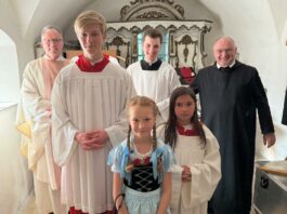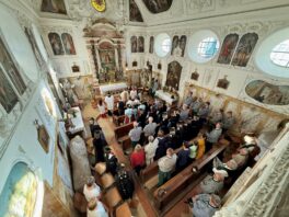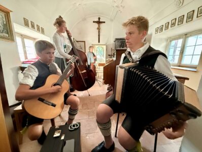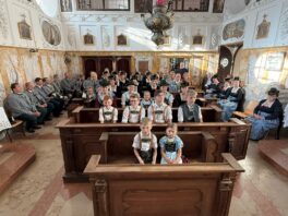 Den feierlichen Auftakt bildete der Gottesdienst in der ehrwürdigen Schlosskapelle Hohenaschau – ein Ort voller Geschichte und tiefer Verbindung zum Verein, der den passenden Rahmen bot für das geistige Innehalten zum Jahrtag. Ortspfarrer Paul Janssen und Priesteramtskandidat Dr. Christian Elsen zelebrierten die Messe in stimmungsvoller Atmosphäre. Die Klänge einfühlsamer Volksmusik, gespielt von den Geschwistern Sophia, Xaver und Quirin Eder aus den eigenen Reihen, erfüllten die Kapelle mit besonderer Tiefe und Heimatgefühl. Die Lesung übernahm Röckefrau Monika Anner, während Katharina Hendlmeier und Herbert Reiter die Fürbitten vortrugen – mit Worten, die an das Miteinander im Verein, an gelebte Tradition und an die Verstorbenen erinnerten.