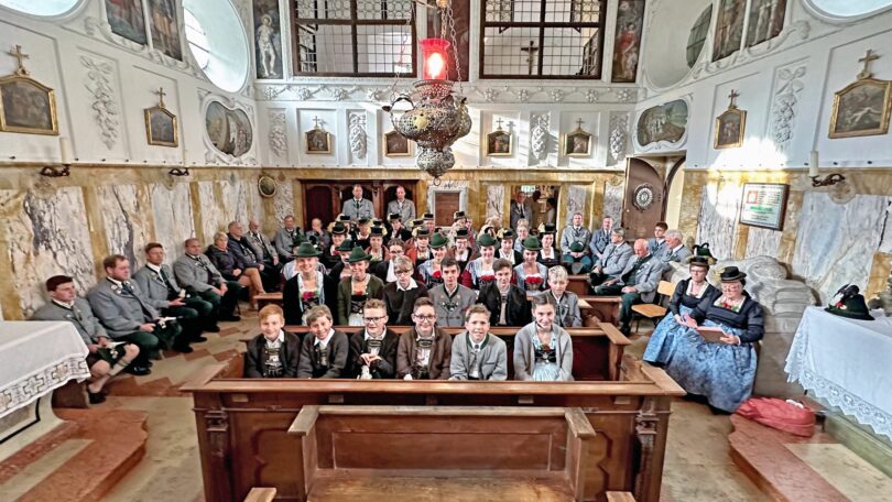 Pfarrer Hermann Overmeyer begrüßte zuvor zahlreiche Mitglieder des Trachtenvereins „D´ Griabinga“ Hohenaschau beim 22. Jahrtag des Vereins in der reich geschmückten Schlosskapelle von Hohenaschau. Bei zweien dieser Jahrtage pilgerte der Vorsitzende des Vereins Claus Reiter während der Coronajahre alleine zur Schlosskapelle und stellte dort eine Kerze zur Erinnerung auf. Mit dem Geläut der Schlosskapellen-Glocke wurden die Menschen im Tal auf das Gedenken aufmerksam gemacht und stellten Kerzen ins Fenster. „Wir gedenken der Mitglieder des Vereins, die in den vergangenen Jahren verstorben sind. Wir bitten um Kraft und Mut, um das übertragene Erbe von Tracht und Brauchtum weitergeben zu können. Wir wollen es übergeben an unsere Kinder, an unsere Jugend und an alle anderen Menschen, die das wollen. Die Idee das heimatliche Brauchtum zu pflegen und sich stets seiner Herkunft aus dem Chiemgau und aus Aschau bewusst zu sein, wird niemals alt und überlebt sich nicht; sie wird immer wieder von den Alten an die Jugend weitergegeben und pflanzt sich weiter fort durch die Jahrzehnte“, erinnerte Claus Reiter die Mitglieder des Trachtenvereins „D´ Griabinga“ Hohenaschau an die Herkunft der Trachtenidee in Aschau; „wir danken der Familie Cramer-Klett für die Unterstützung des Vereins durch die langen Jahre seiner Geschichte“. Ludwig und Peggy von Cramer-Klett und Bürgermeister Simon Frank nahmen an der Feierstunde teil. Die Einkehr nach dem Gottesdienst gehört zum Kirchgang: Im Alpengasthof „Brucker“ zu Füßen des Schlosses von Hohenaschau feierte der drittälteste Trachtenverein in Bayern nach Kirchgang und Gebet den weltlichen Teil seines Jahrtags. 2024 feiern die „Griabinga“ das 140-jährige Bestehen des Vereins und damit verbunden das Gaufest des Chiemgau-Alpenverbands.