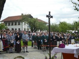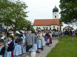 Ein Festtag für die bayerische Brauchtumspflege und als Zeichen gemeinschaftlicher bayerischer Lebensfreude war der Festsonntag beim Trachtenverein „Edelweiß“ in Höhenmoos. Der 110. Geburtstag des Vereins war Anlass für die Vorbereitung eines zehn Tage dauernden Festes, das mit dem Festsonntag ihren Höhepunkt erfuhr. Der Sonntag als wertvolles Kulturgut war auch der Mittelpunkt im Thema von Prälat Josef Obermaier, der den Gottesdienst am Dorfanger mit Blick zur Ortskirche zelebrierte.