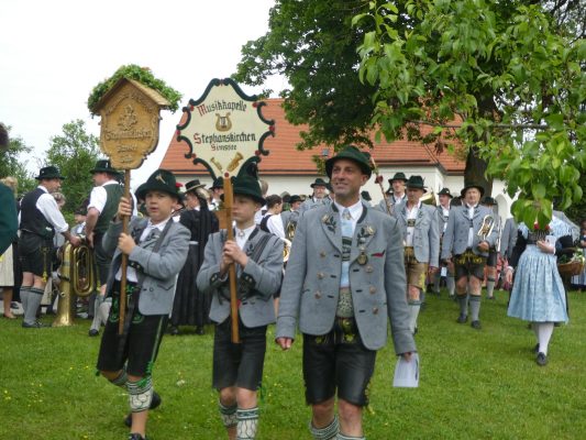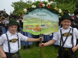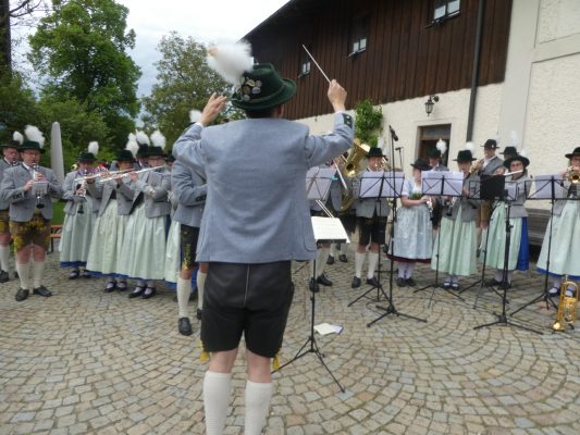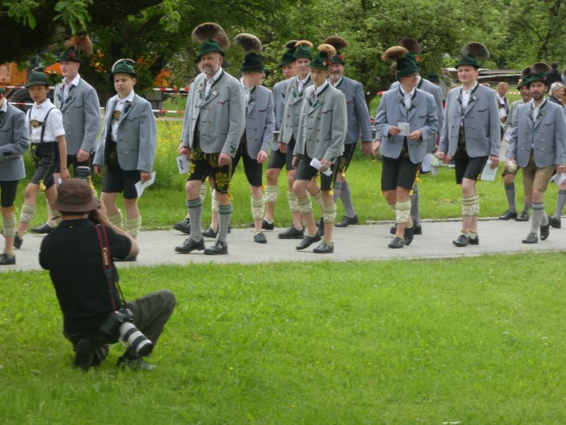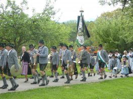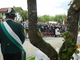 Schon am frühen morgen trafen die über zwanzig Gast-, Paten, Nachbars- und Ortsvereine mit Musikanten und Fahnenabordnungen in Höhenmoos ein. Vielfach schweigend ging der erste Weg ins Festzelt vorbei an den Ruinen des Bauernhofs, der am Eröffnungstag unmittelbar neben dem Festzelt ein Raub der Flammen wurde. Den Gottesdienst gestalteten musikalisch der örtliche Kirchenchor und die Festmusikkapelle Rohrdorf. Festleiter Christian Steiner und Vorstand Christian Lechner freuten sich angesichts des angenehmen, trockenen Wetters, dass die eingeladenen Vereine so zahlreich nach Höhenmoos kamen. Unter den Ehrengästen waren Gauvorstand Miche Huber vom Chiemgau-Alpenverband, Schirmherr und Zweiter Bürgermeister Joachim Wiesböck sowie die beiden Altbürgermeister Fritz Tischner und Paul Unterseher senior aus Rohrdorf und Höhenmoos. Gemeinsam nahmen Sie an der Feier zur Ehre Gottes unter freiem Himmel teil. Leidenschaftlich ging dabei als Zelebrant und Prediger Prälat Josef Obermaier auf die Wahrung der Sonntags-Wertschätzung ein. Er begann seine Ausführungen mit den Worten: „Ganz früher zu Urwaldzeiten war Höhenmoos noch kein Paradies, in den Sümpfen und Wäldern verschanzten und versteckten sich die Einwohner, die Angst vor den römischen Soldaten hatten. Erst mit der Missionierung begann eine neue Zeit. Die Missionare brachten Licht, trockenen Boden und Siedlungen“. Als Folge davon -so der Prälat weiter- kam es zu einer neuen Kultur des Zusammenlebens. Dazu gehörten eine gewisse Ordnung im Leben mit Körperreinigung und besseren Kleidern. „Das regelmäßige Zusammenkommen am Sonntag war die Einführung eines arbeitsfreien Tages, das auch Lust zu neuen Kleidern machte, so Prälat Obermaier, der die weitere Entwicklung der Missionierung wie folgt beschrieb: „Vorher war alles nur schmutzig und schmutzig und es gab nur Arbeit und Arbeit, mit der Verkündigung des Evangeliums entstanden eine Kultur der Verständigung und eine Kultur des Sich-Schön-Machens“. Damit wurde mit friedlichen Mitteln der Sonntag fest in das Leben der Menschen verankert. Die Wert-Erhaltung des Sonntags und die Wertschätzung des guten Sonntags- und Trachtengewandes soll -so der abschließende Wunsch des Predigers- auch fortan in Höhenmoos, im Chiemgau und in ganz Bayern von hoher Bedeutung sein. Angesichts des Bildes, das die Trachtlerinnen, Trachtler, Blasmusikanten und Fahnenabordnungen auf dem großen Dorfplatz boten, waren die Wünsche des Prälaten für die Zukunft besonders eindrucksvoll sichtbar. Zweiter Bürgermeister und Schirmherr Joachim Wiesböck dankte in seinem Grußwort dem Trachtenverein für seine gute Nachwuchsarbeit und für seine passenden Auftritte in der Öffentlichkeit. Ein Extra-Vergelt´s-Gott sagte er der Helfer-Gemeinschaft beim nächtlichen Brand. „Da habt Ihr gezeigt, dass Ihr gut aufgestellt und füreinander da seid“, so der Bürgermeister. Nach dem Gottesdienst und dem gemeinsamen Singen der Bayernhymne begaben sich die verschiedenen Züge auf den Weg durch das fahnengeschmückte Dorf. Dabei zeigten die gastgebenden Höhenmooser Trachtler auf einigen Motivwägen Teile ihrer Orts- und Vereinsgeschichte. Zum Abschluss trafen sich dann alle Teilnehmer vom Festzug noch im Festzelt, dort zeigten die Höhenmooser, ihre Paten und Nachbarn mit verschiedenen Auftritten, dass die Plattler-, Musik- und Tanzpflege im Chiemgau hoch lebendig ist. Das gemütliche Beisammensein im Festzelt und in der dortigen, von den jungen Leuten des Vereins urig ausgebauten Bar beendete den festlichen Jubiläumstag der Höhenmooser Trachtler. Das weitere Festprogramm in Höhenmoos sieht am heutigen Montag, 22. Mai ab 18 Uhr ein Kesselfleischessen und am Mittwoch, 24. Mai eine Party der Katholischen Landjugend von Höhenmoos vor. Am Donnerstag lädt die Feuerwehr von Höhenmoos ab 11 Uhr zu einem bunten Familientag mit zahlreichen Aktivitäten und lustigen Angeboten ein. Die Festtage enden am Wochenende mit viel Blasmusik, am Samstag, 27. Mai mit einem Blasmusik-Gemeinschaftskonzert von Musikanten aus Rohrdorf und dessen Partnergemeinden sowie am Sonntag, 28. Mai mit dem Tag der Blasmusik ab 10 Uhr.