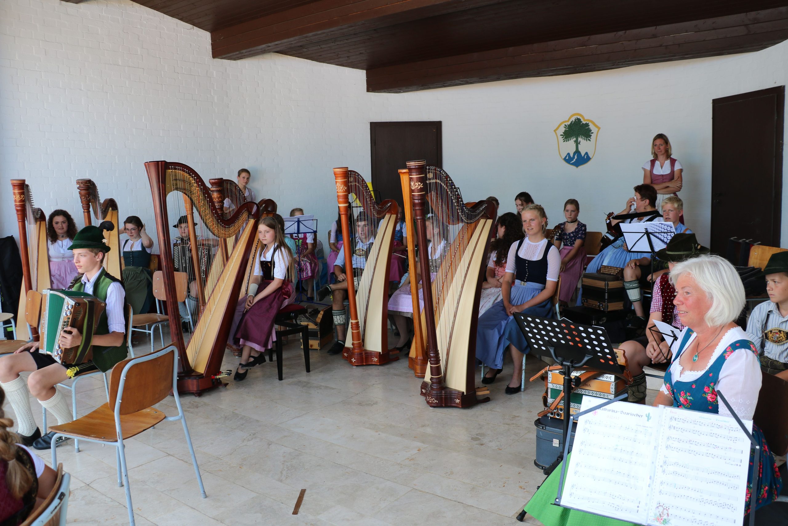 Die Mitwirkenden beim Jugendmusikhoagascht des Trachtenvereins „Edelweiß“ Niederaschau im Kurpark