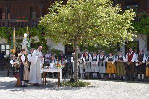 Auf dem Bruder-Konrad-Hof feierte Trachtenpfarrer Josef Tiefenböck mit den Trachtlern aus dem Dreiflüsse-Trachtengau den Wallfahrtsgottesdienst. (Foto: Hauzeneder)