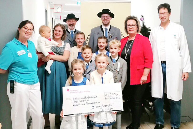 Der Gebirgs-Trachten-Erhaltungs-Vereins (GTEV) „d‘ Mangfalltaler“ Westerham e.V. hat in der Weihnachtszeit im RoMed Klinikum Rosenheim eine Spende von 2 500 Euro an den Förderverein der Kinderklinik Rosenheim e. V. überreicht.