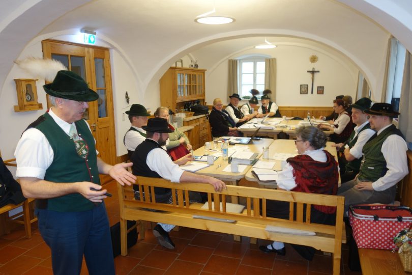 Foto: Hötzelsperger – Blick in die Sitzung des Vorstands vom Bayerischen Trachtenverband mit den Sachgebieten im Pöschl-Stüberl