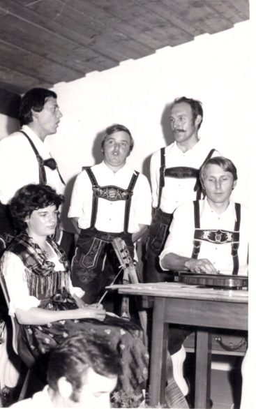 - Hittenkirchener Sänger – von links: Hans und Sepp Steinbichler – Miche Berneder – Willi Weitzel an der Zither, links Birgit Weingartner.
