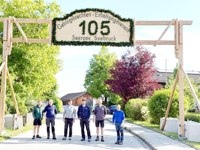 Und was passt besser, als beim Trachtenvorstand Anton Mayer „im Garten“, dessen Grundstück nun mit dem von Festausschussmitglied Toni Heistracher verbunden ist. Heistracher war auch beim Aufbau mit Festleiter Seppi Mayer, seinen Brüdern Hansi und Hubert, sowie Michael Klinger und Hansi Dürrmann mit dabei um den „Brückenbinder“ zu errichten. Nun ziert seit dem vergangenen Samstag die Straßenüberbauung den Ort.