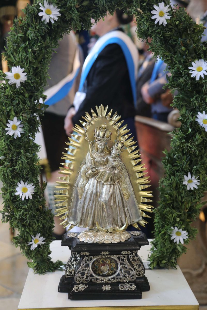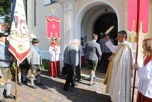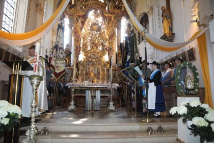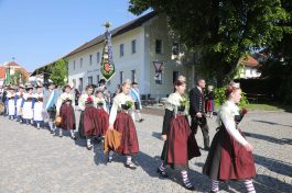 Am Christi Himmelfahrtstag, 30. Mai beteiligten sich bei herrlichstem und idealsten Maiwetter rund 200 Trachtlerinnen und Trachtler an der alljährlichen, traditionellen und mittlerweilen 59. Trachtlerwallfahrt des Isargaues zum beliebten Wallfahrtsort Maria Thalheim. Erstmals urkundlich erwähnt wurde die Wallfahrt nach Maria Thalheim im Jahr 1419, so das heuer das 600-jährige Jubiläum als “Wallfahrt ach Maria Thalheim gefeiert werden kann. Zudem ist sie die älteste Marienwallfahrt im Erdinger Land. Ausgangspunkt war in aller herrgottsfrüh die Zusammenkunft der Trachtenvereine aus der Region mit ihren zahlreichen Fahnenabordnungen in der Gemeinde Fraunberg und zogen singend und betend eindrucksvoll zu ihrem christlichen Glauben nach Maria Thalheim. In der vollen Wallfahrtskirche in Maria Thalheim wurde ein gemeinsamen und würdigen Rahmen Gottesdienst gefeiert. Diakon Christian Pastötter begrüßte eingangs die Trachtlerschar im schönen Wallfahrtsort Maria Thalheim im Erdinger Gäu und zum Jubiläum “600 Jahre Wallfahrt nach Maria Thalheim” wurde gemeinsam ein Wallfahrtsgebet in der Wallfahrtskirche gebetet. Zudem wurde die mitgebrachte Kerze zum Jubiläum “100 Jahre Isargau II”, am Altar gesagnet. Pastötter gestaltete dann auch in der Wallfahrtskirche dieTrachtlerwallfahrtswortgottesdienstfeier und sagte, diese Tradition sei gut, „Aber sie muss immer wieder geprüft werden am Zentrum der Botschaft Christi“ und um die Rückbesinnung auf die Grundwerte. Grundwerte wie Zivilcourage, Vernunft, Aufrichtigkeit und Bekenntnis zum Glauben besinnen. Damit Werte und gute Traditionen erhalten werden können, muss es auch lebendige Zeugen dafür geben. Es braucht Gemeinschaften, die Traditionen in einem guten, lebensfördernden Sinne schützen und bewahren. Es braucht Gemeinschaften, die ihre Fahne und das Trachtengewand nicht in den Wind des Zeitgeistes hängen. Ein Trachtenverein ist der christliche Ursprung und weiß sich verpflichtet die Werte am Ort zu schützen, wie Glaube – Sitt – Tracht – Heimat. Und daher gilt es, die Heimat zu bewahren, darauf zu achten, dass in all den Veränderungen und Umbrüchen eines Dorfes das Heimatgefühl und die Verbundenheit untereinander nicht verloren gehen. Der Geistliche munterte die Trachtler in seiner Ansprache auf, an die Glaubenstreue festzuhalten, mit unserem täglichen Glauben“. Die Wallfahrt zur Mutter Gottes nach Thalheim war bereits um 1400 bekannt. Über ihre Entstehung berichtet eine Legende: In dem Hollerbaum, der heute noch an der Nordseite der Kirche steht, wurde ein fast lebensgroßes Gnadenbild der Mutter Gottes verehrt. Als immer mehr Menschen zur Zeit des Mittelalters das Gnadenbild aufsuchten, entschlossen sich die Bewohner von Thalheim und der nächsten Umgebung, auf einen nahe liegenden Berg, von wo aus man die ganze Gegend übersieht, zu Ehren der heiligen Jungfrau eine Kirche zu erbauen. Als man aber, so erzählt die Sage, das wundertätige Marienbild vom Hollunderbaum, auf dem es bisher gestanden hatte, entfernte und in das neu erbaute Gotteshaus brachte verschwand es über Nacht ohne alles menschliche Zutun und wurde am Morgen an seinem alten Platz an dem Baum wieder gefunden. Die Leute versuchten immer wieder, das Bild zu versetzen, bis sie es endlich als ein Zeichen ansahen, das die heilige Jungfrau Maria ihr Bildnis nicht vor dem Ort entfernt wissen wolle. So wurde dann das neu erbaute Kirchlein wieder abgetragen und unweit des Hollunderbaumes unten in Thal eine Kirche gebaut. Als aber immer mehr Wallfahrer zur Gottesmutter kamen, wurde auch diese Kirche zu klein, so dass man in der darauffolgenden Zeit eine größere und letztendlich die gegenwärtige Wallfahrtskirche zu Thalheim erbaute. Im Jahre 1645 konnte das berühmte und uralte Marienbild dorthin übertragen werden. Dieses Geschehen ist im Deckenfresko über dem Hochaltar festgehalten. Das heutige Gnadenbild stammt aus der Zeit um 1475. Durch die Wirren der Reformation und des 30-jährigen Kriegeshatte die Wallfahrt sehr gelitten. In der ersten Hälfte des 19.Jahrhunderts wurde sie jedoch neu belebt, vor allem nach dem Zweiten Weltkrieg. Thalheim wurde so zum gern besuchten Gnadenort der Pfarreien aus den benachbarten Städten und Landkreisen. Den ganzen Sommer hindurch kommen die Pilger teils auch mit Bussen angereist, und immer mehr Gruppen und Einzelpilger finden zur Gnadenstätte des „Thalheimer Himmels“. In gemütlicher und geselliger Unterhaltung traf man sich im Anschluss zu einem Frühschoppen bei Weißwürsten, Weißbier und Brezen im benachbarten Gasthaus Stulberger.