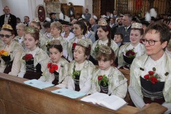 -Die Ministranten zusammen mit dem Diakon Christian Pastötter empfingen am Ortsrand die pilgernde Trachtlerschar