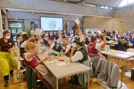 Von den 22 Gauverbänden, die im Rahmen der Landestagung des Bayerischen Trachtenverbandes beim Gauverband Oberpfalz in der Mensa der Universität von Regensburg zusammenkamen, nun dieser neue Bilderbogen.