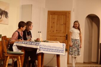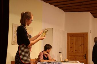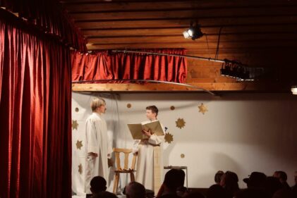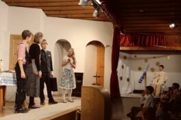 Nach der Pause folgte der Höhepunkt der Feier: das traditionelle Weihnachts-Theaterstück, das Alexandra Bauer aus Wiederdorf gemeinsam mit mehreren Jugendlichen über viele Wochen hinweg mühevoll einstudiert hat. Diesmal stand der Einakter “Simmerls Engeltrick” von Waltraud Götz auf dem Programm, der zuvor bereits beim Bernauer Seniorennachmittag begeistert aufgenommen worden war. Das Stück bot eine humorvolle und kindgerechte Auseinandersetzung mit dem Thema Engel. Die rund 50-minütige Aufführung wurde am Ende vom Publikum mit viel Applaus honoriert.