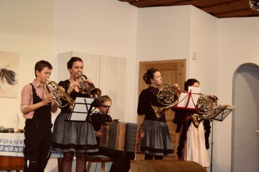 Die erste Hälfte des kurzweiligen Abends war ganz der Musik gewidmet. Der Trachtennachwuchs präsentierte sich in vielfältigen Formationen – sei es mit Soloauftritten, in Gruppen, als Familienmusik oder in Begleitung von Erwachsenen. Dabei beeindruckten die jungen Musikerinnen und Musiker mit ihrem Können und ernteten dafür viel Applaus vom Publikum.